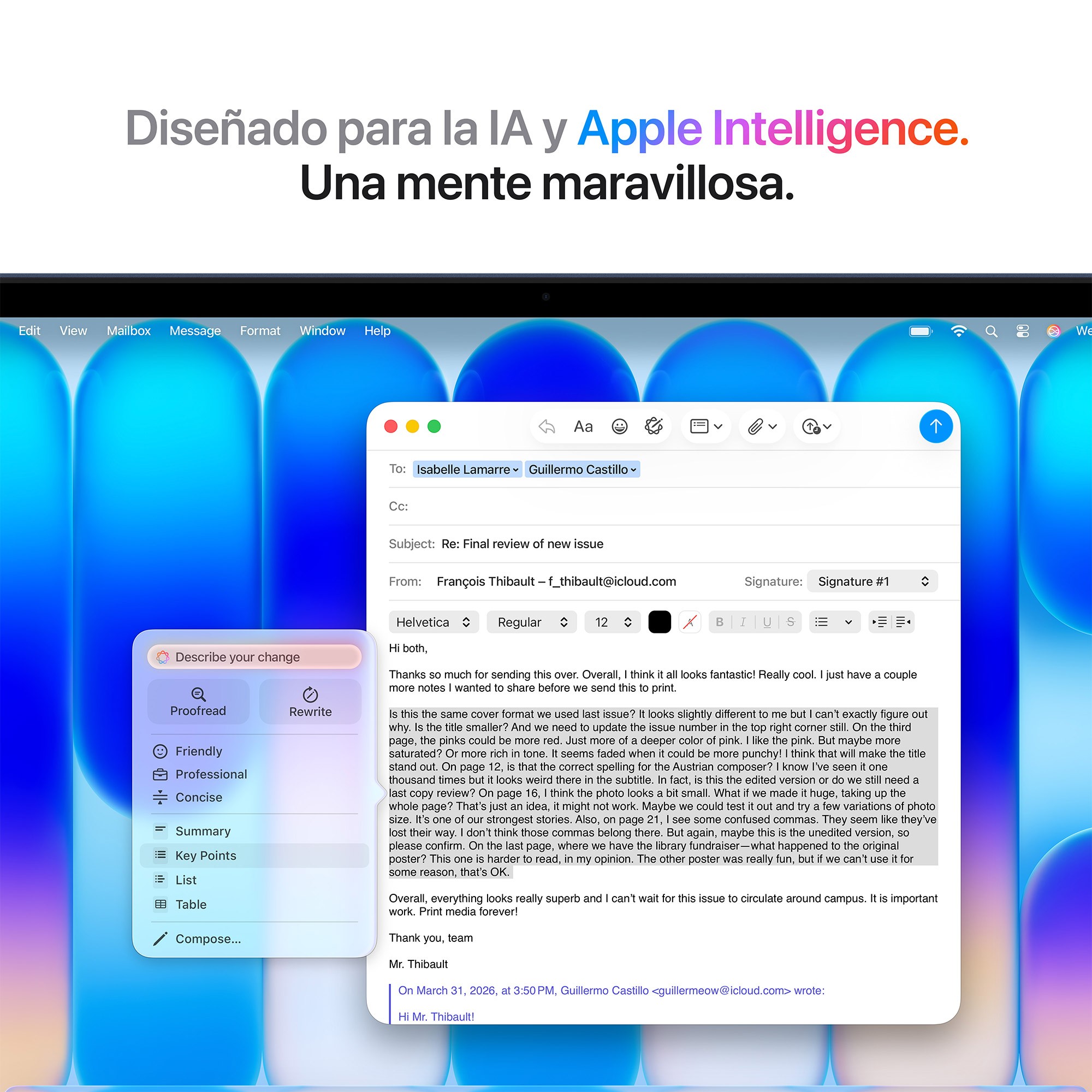 El doble de espacio para tus ideas. El MacBook Neo 2026 con MacBook Neo 512 GB de SSD te da la tranquilidad de llevar todos tus documentos encima sin sacrificar la velocidad del chip A18 Pro.